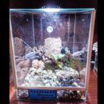 Terrario allestito da esposizione completo di illuminazione, arredo e n.1 Geosesama (granchio vampiro)